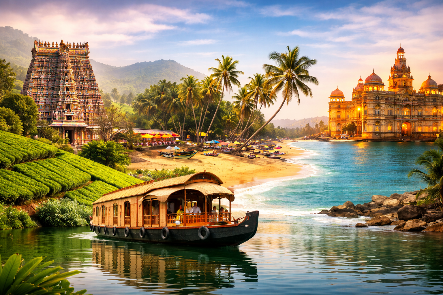 South India Group Tour Package – By World Trip PlanDiscover the timeless beauty of South India with World Trip Plan, where every journey is designed to offer you relaxation, culture, and unforgettable memories. From the tranquil backwaters of Kerala to the royal heritage of Mysore and the lush green hills of Ooty, our South India Group Tour Package is perfect for travelers seeking nature, spirituality, and serenity—all in a single trip. Package OverviewExperience the charm of South India’s most iconic destinations including Munnar, Alleppey, Coorg, and Rameswaram. This group tour is carefully curated with comfortable stays, guided sightseeing, and smooth transportation—ideal for families, friends, and corporate groups. Key HighlightsRelax amidst the tea gardens of MunnarEnjoy a houseboat cruise in the backwaters of AlleppeyExplore the majestic Royal Palace of MysoreVisit the scenic viewpoints of Ooty and CoorgSeek spiritual blessings at the Meenakshi Amman Temple and Ramanathaswamy TempleA fully planned group tour curated by experts Best Destinations CoveredMunnarAlleppeyOotyMysoreRameswaramMadurai Best Time to VisitSouth India is a year-round destination, but the best time is from October to March when the weather is pleasant and ideal for sightseeing. Why Choose World Trip Plan?Well-organized group departuresComfortable hotels & transportExperienced tour managersAffordable pricing with best servicesCustomized support & 24/7 assistance “Explore South India the smart way with World Trip Plan—where every journey becomes a memorable group experience.”
